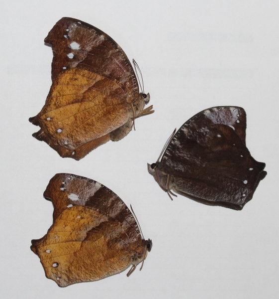 Satyridae. 3 x Melanitis velutina gigantea. Buru I